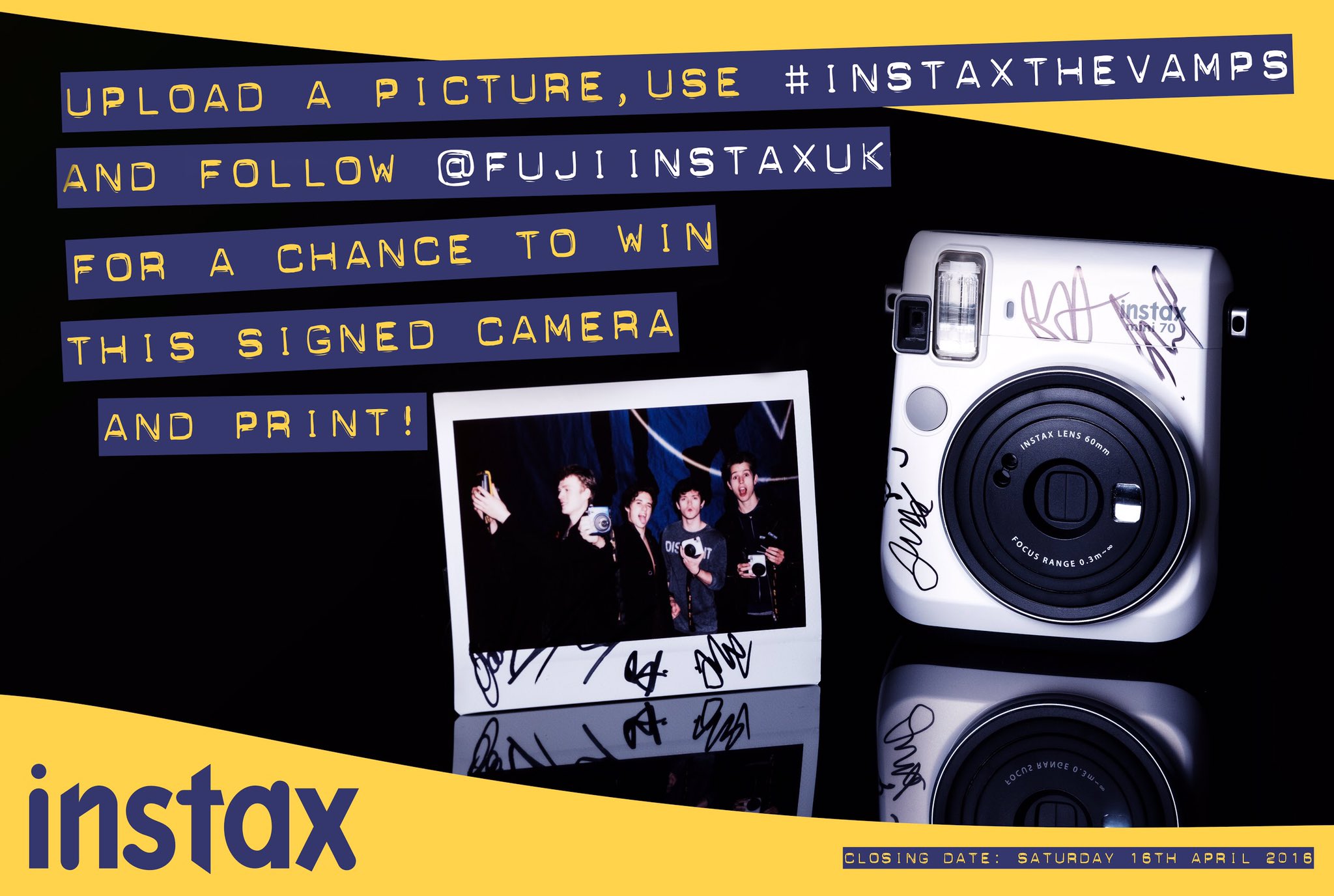 The Vamps wraz z Instax ogłosiło konkurs, w którym można wygrać aparat oraz zdjęcie z podpisami Chłopaków :) Wystarczy dodać zdjęcie na twittera z #InstaxTheVamps oraz zaobserwować @fujiinstaxuk